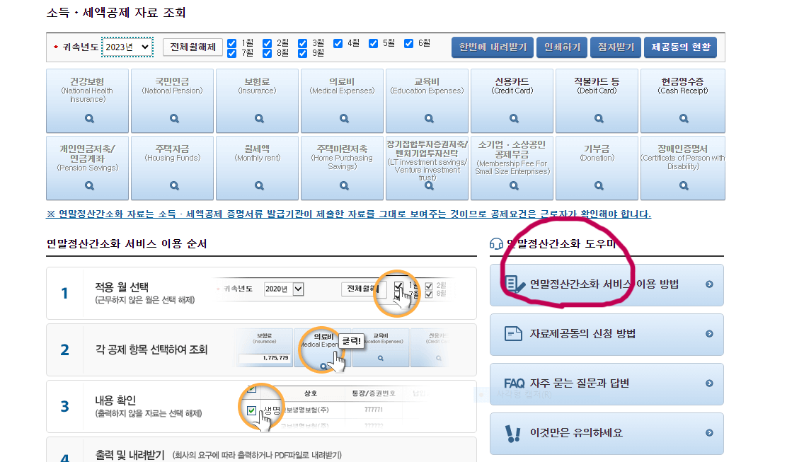 5. 동그라미쳐진 연말정산간소화 서비스 이용방법을 클릭합니다.