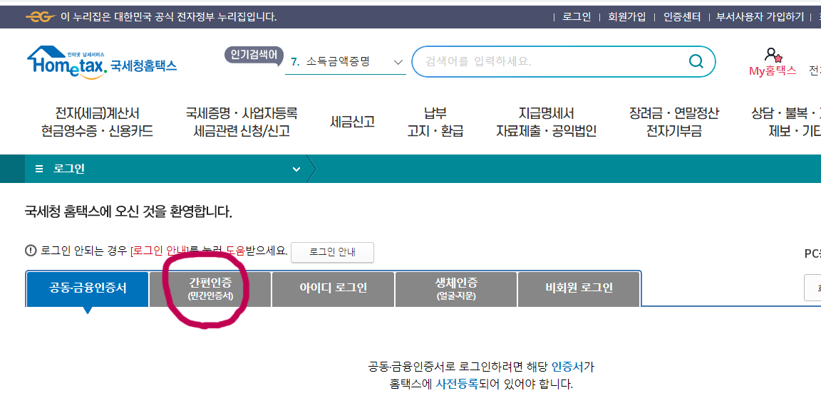 아래 링크를 클릭하시면 홈택스로 연결됩니다.
